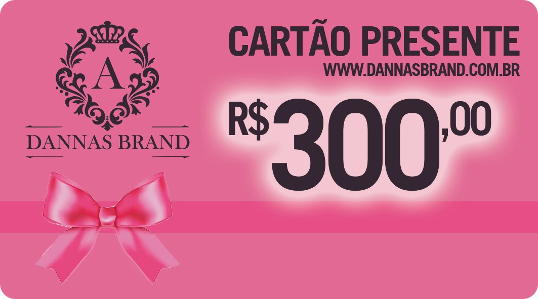 Chegou o cartão presente da Dannas Brand. Você escolhe o crédito, efetua o pagamento online aqui no site e envia o cartão de crédito para a sua presenteada!💝