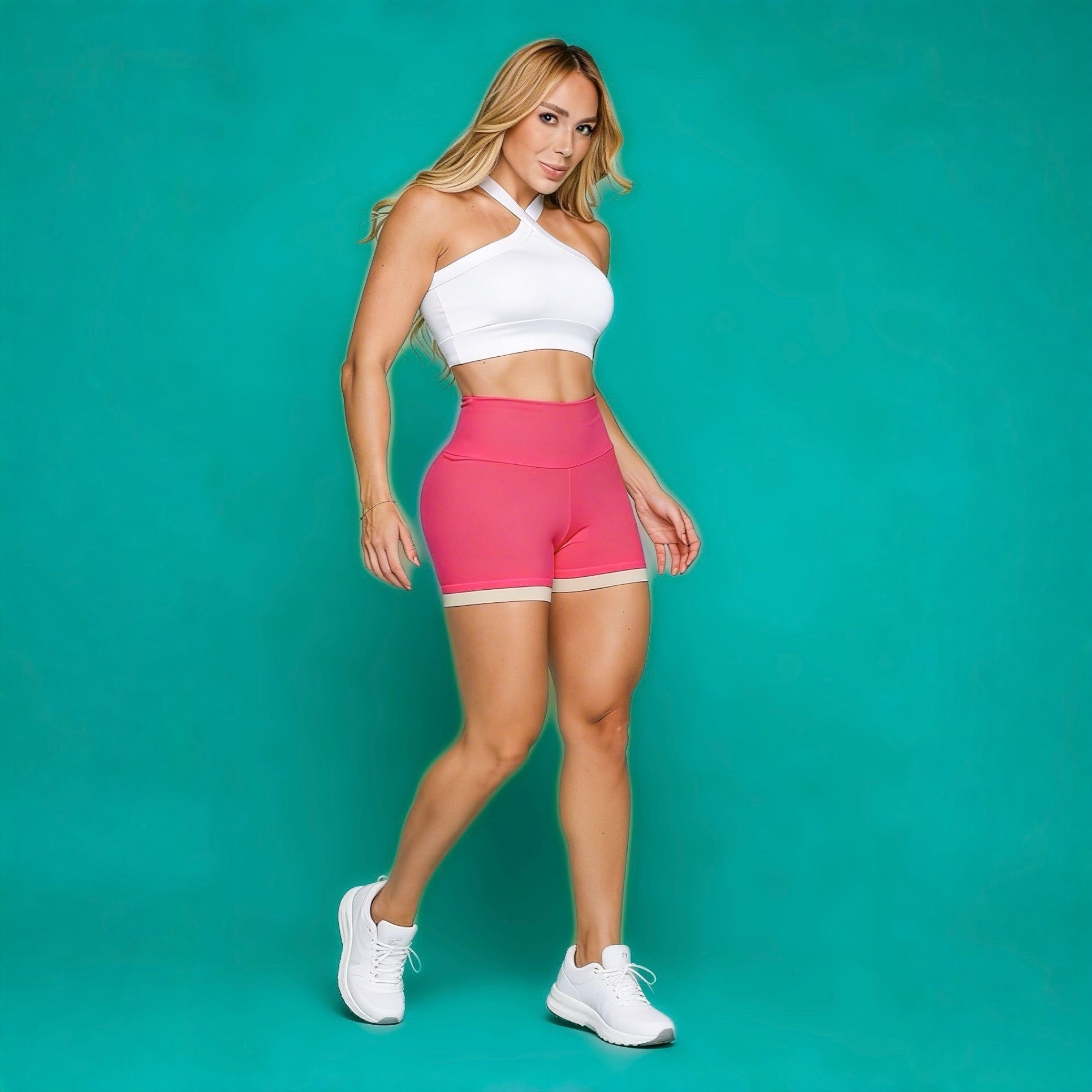 Shorts Gym: com cintura super alta, que produz efeito de barriga chapada, tecido Zero Transparência, com bumbum tradicional, sem franzidos, detalhe com faixas nas pernas e altura mais curto; dando todo o charme e um up a mais no seu visual.