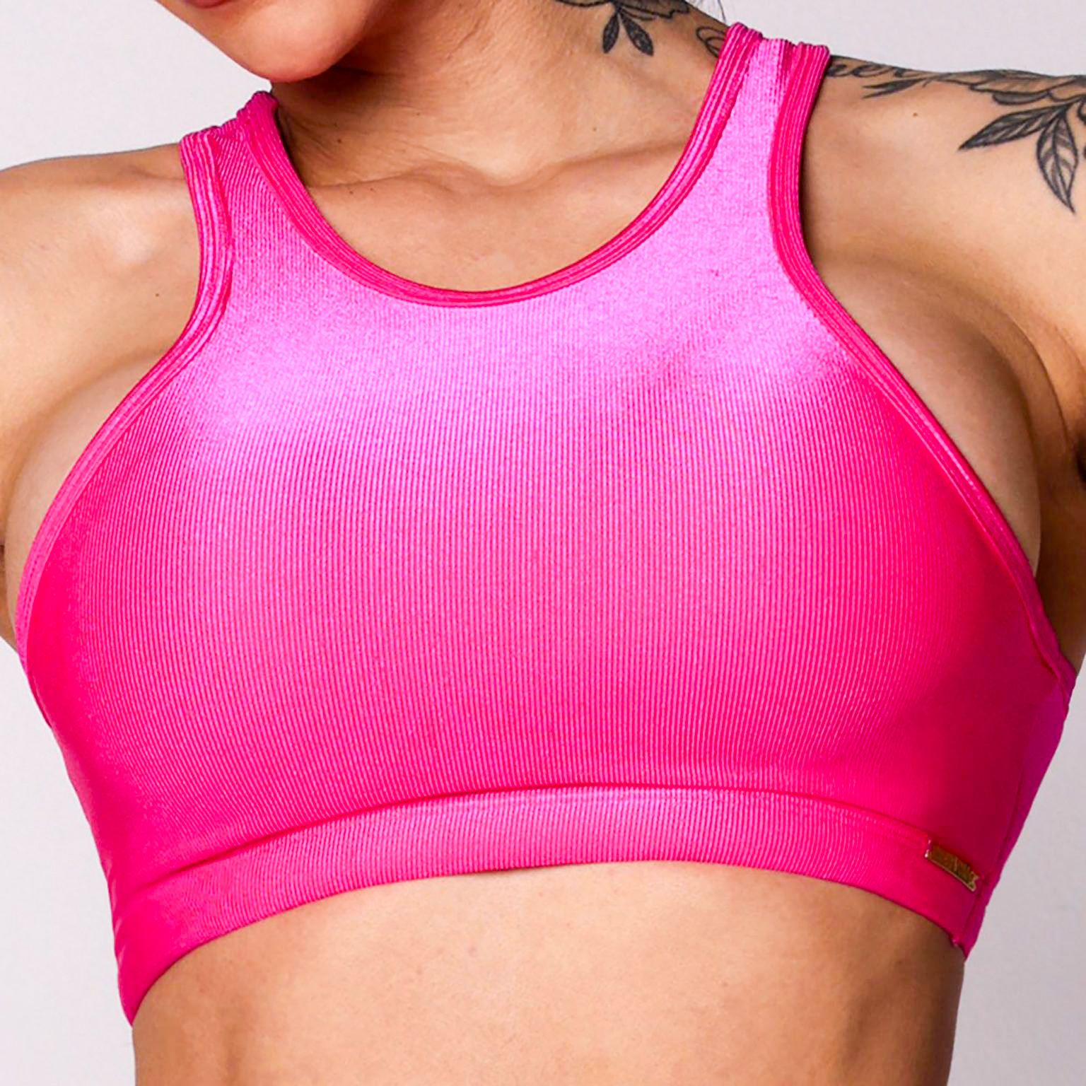 Top com bojo removível, golinha mais alta e elastico na barra; costas fechada estilo nadador;