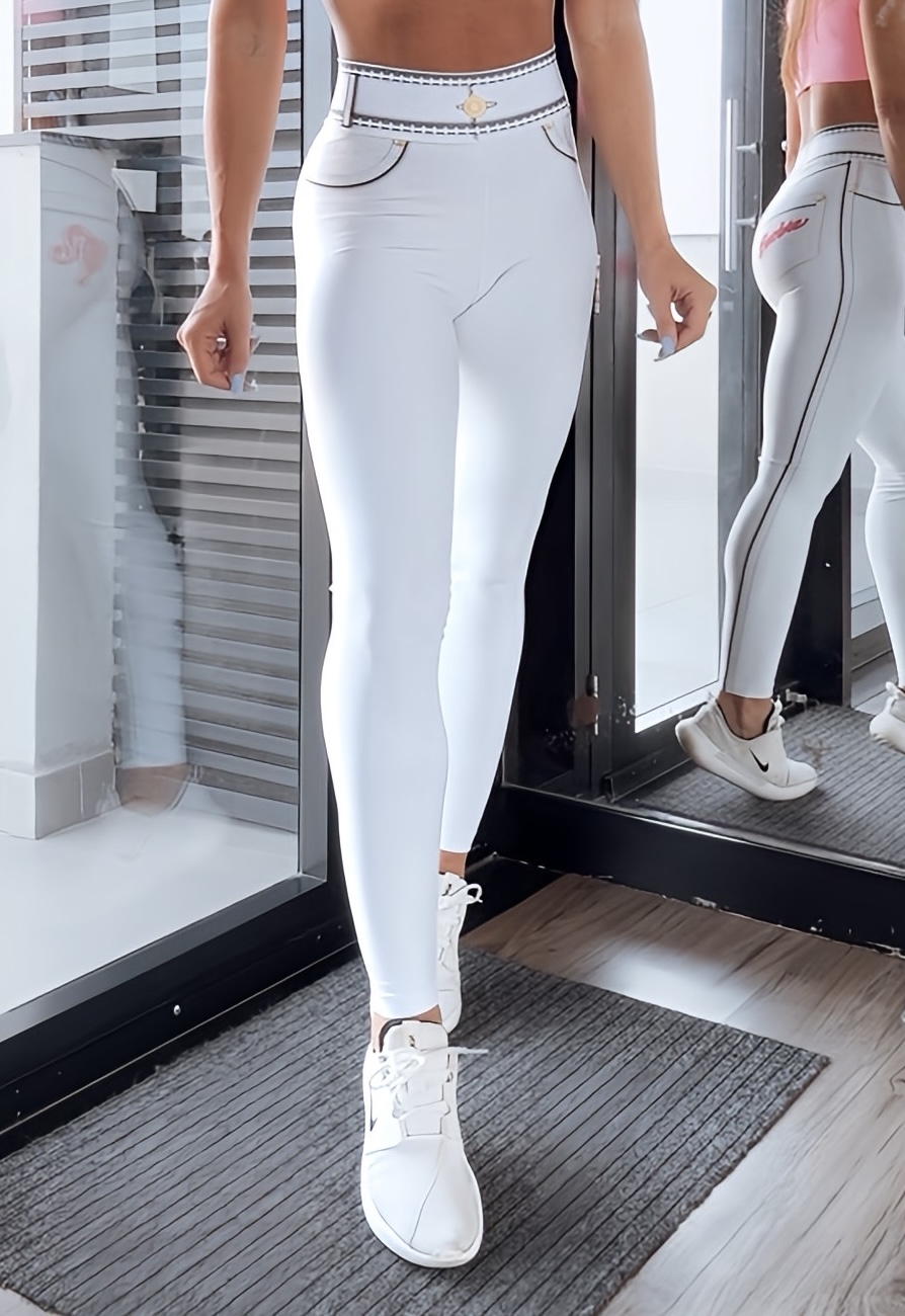 Tecido zero transparência. No entanto sempre recomendamos que seja utilizado com lingerie adequada para atividade fisica: cor nude, sem costura e sem rendas, com tecido liso, obviamente.)